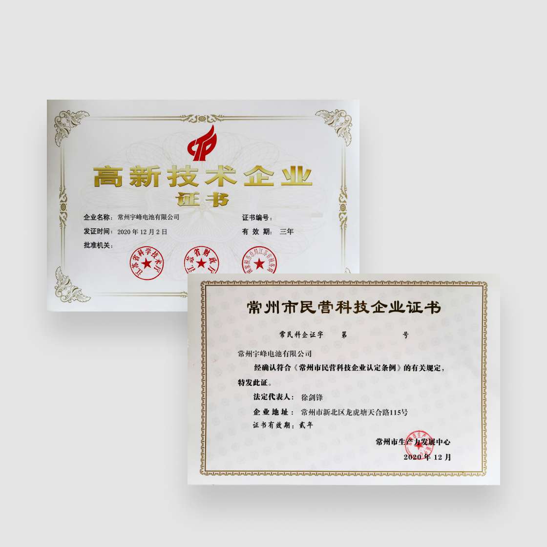 國家高新技術企業、國家級專精特新企業、常州市民營科技企業